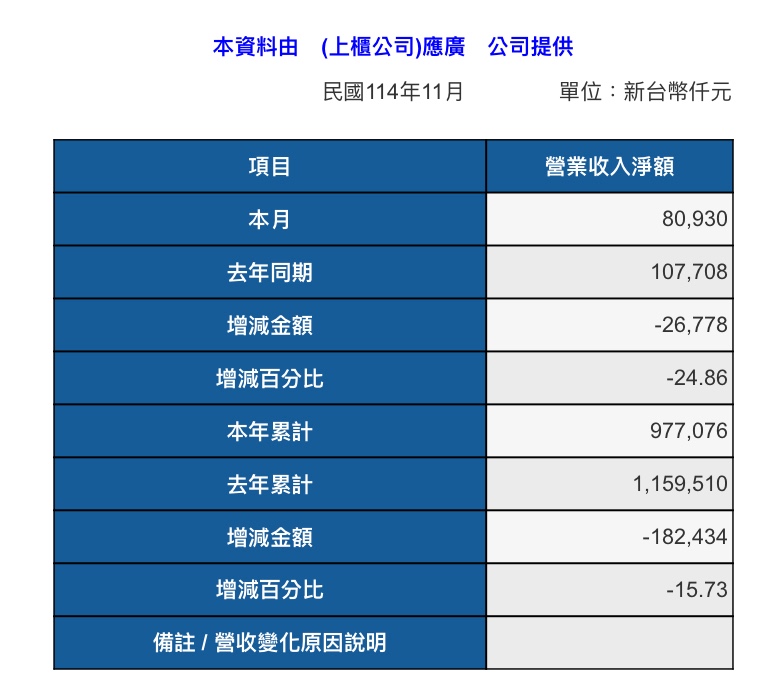 11月營收