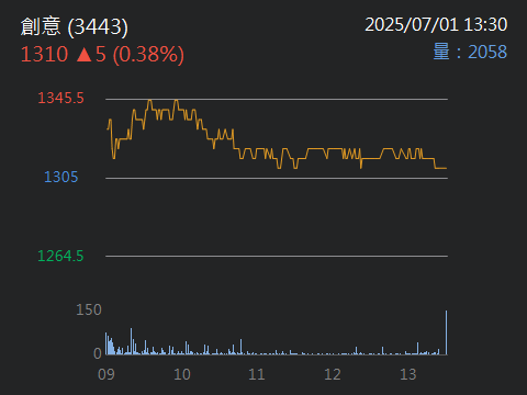 目前從開盤到現在的狀況,台積電開高之後目前是開高走低且目前預估量約58000張,因此可初步判定台積電雖然有展開日線第5波的攻勢,但不是很乾脆,是有可能創高一小段就拉回的走勢,如果是這樣台積電第5波不會很長,而且不能排除這真的非常有可能就已經是確認目前台積電(加權指數)就是漲5-5末升段了,當然由於目前最大可能是不斷創一小段新高就拉回的走勢,因此時間會拖的很久,目前先不考慮走空就是個股表現。 至於個股表現今天還是記憶體族群表現最好,而且不論記憶體次族群製造、模組、IC封測、IC設計都有好幾檔股票大漲,再度驗證記憶體就是市場續航力最強主流。 最新大盤動態更新 "大盤又上去了" 是的, 大盤比台積電強,所以大盤位階是5-5,還是重新修訂為3-3今天沒辦法看出來。