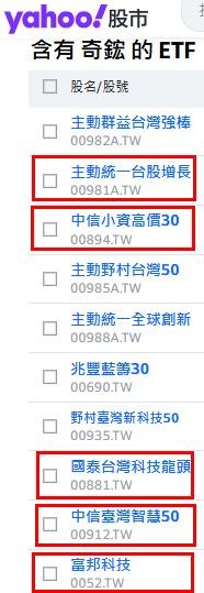 看看是那一個 低等投信 在坎對手的 ETF 成分股。