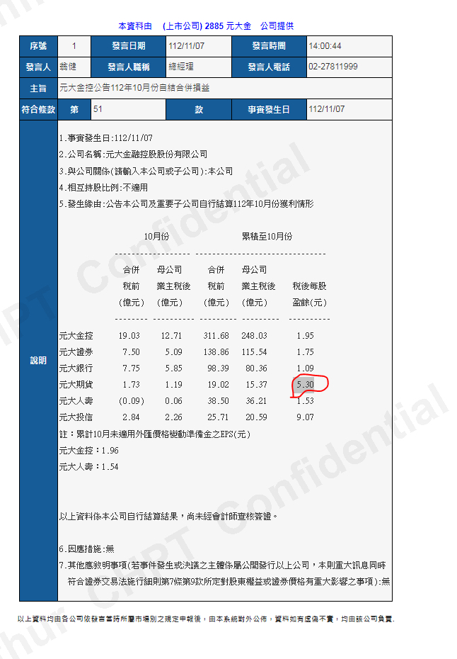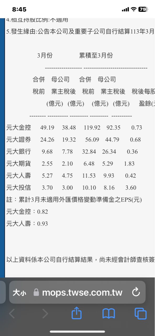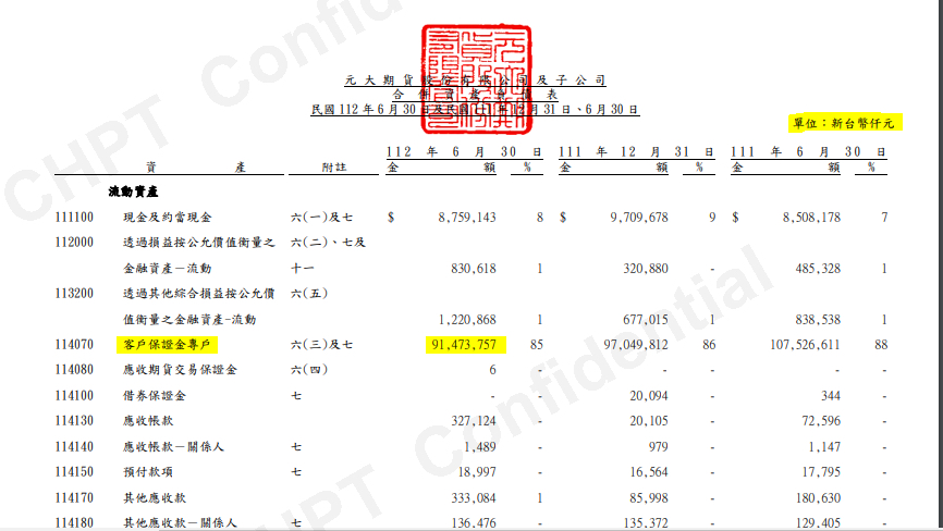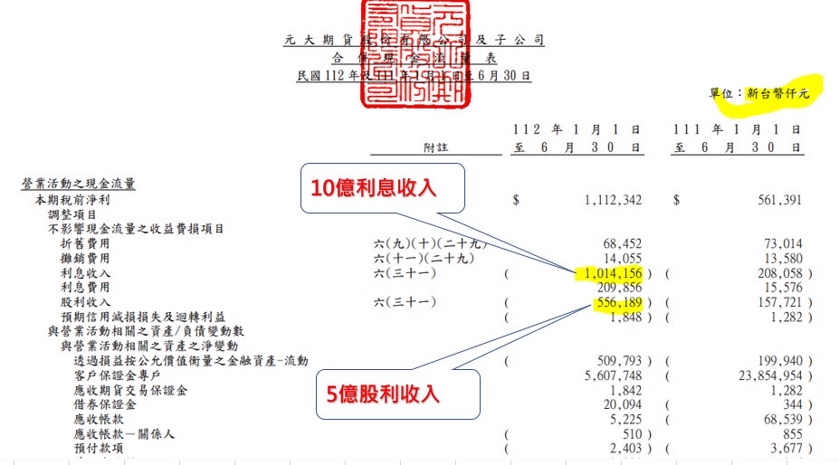 元大期上半年利息收入10億元,股本才29億也。