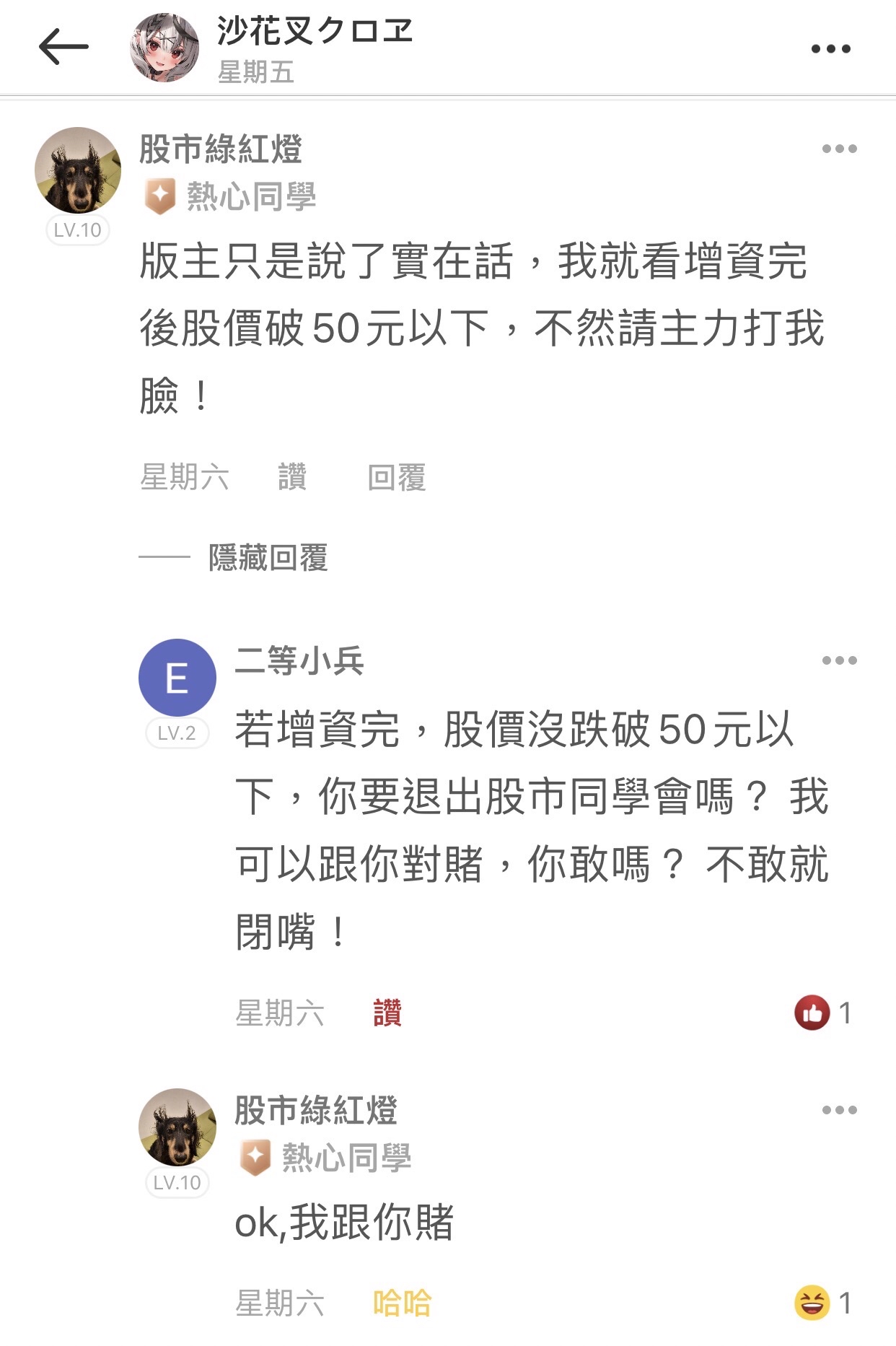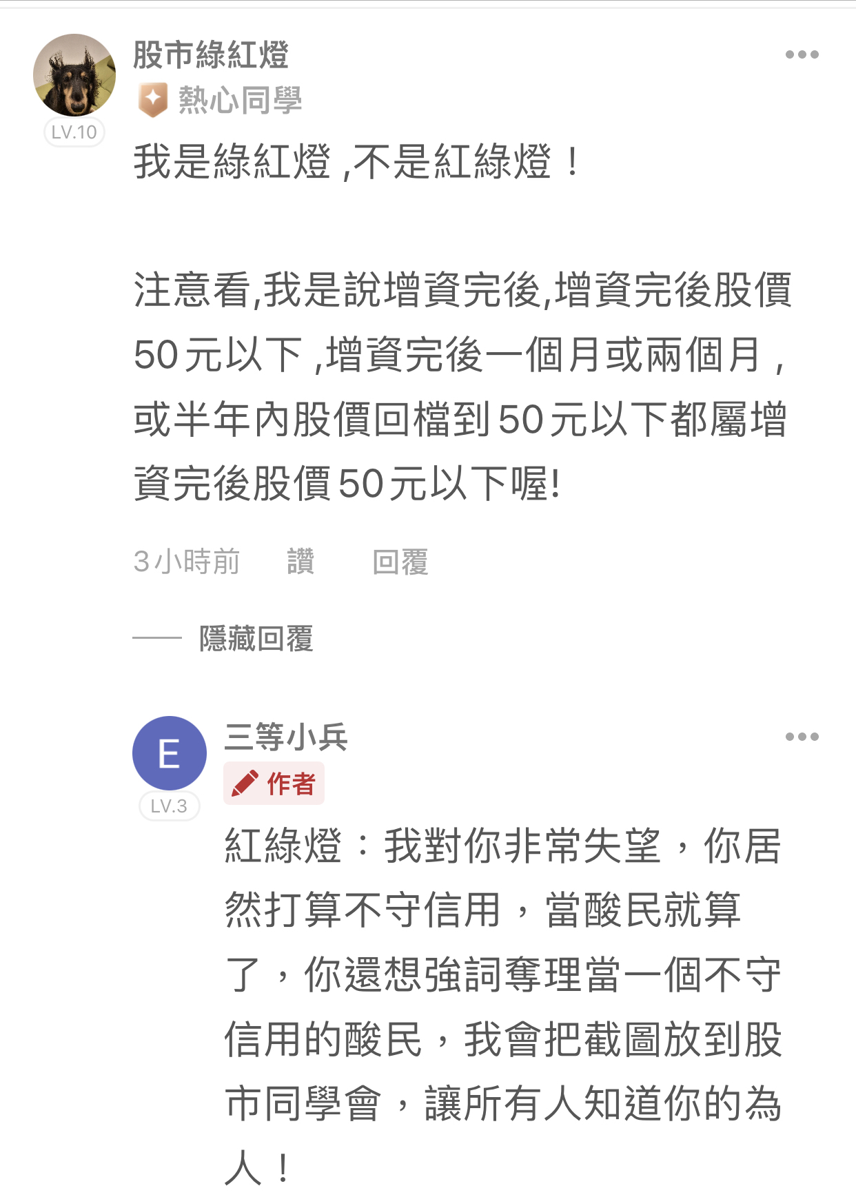 五等小兵 追蹤 好奇同學 Lv.5 2025年12月06日 17:32 亞果生醫 加權指數 元大台灣50 展開 +3 紅綠燈當酸民就算了,現在還想強詞奪理當一個不守信用的酸民? 29 22P 9則留言 打賞 分享 留言 讚