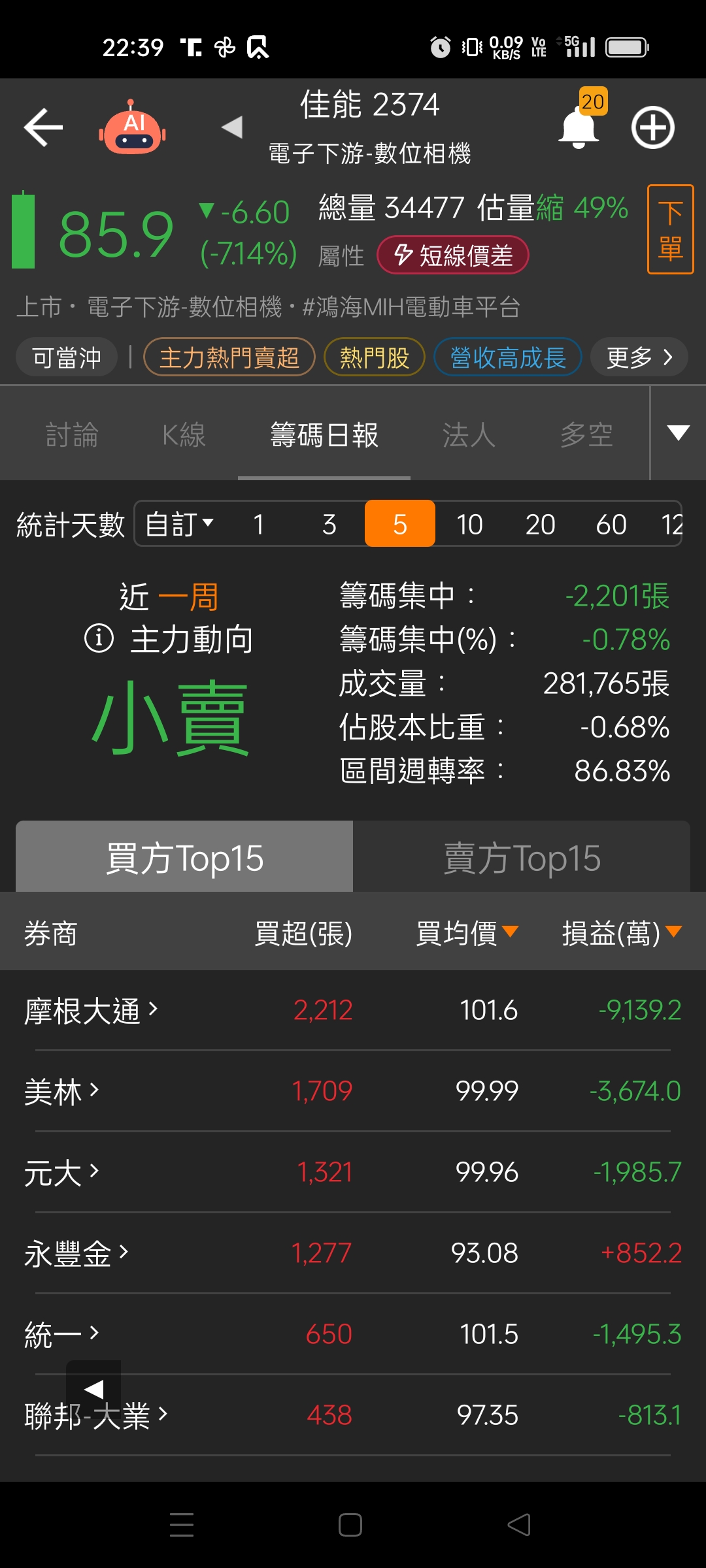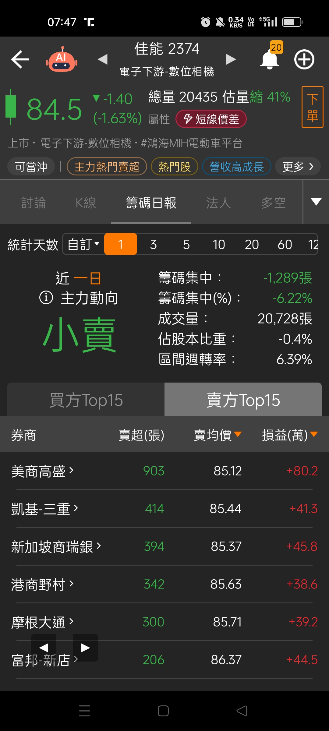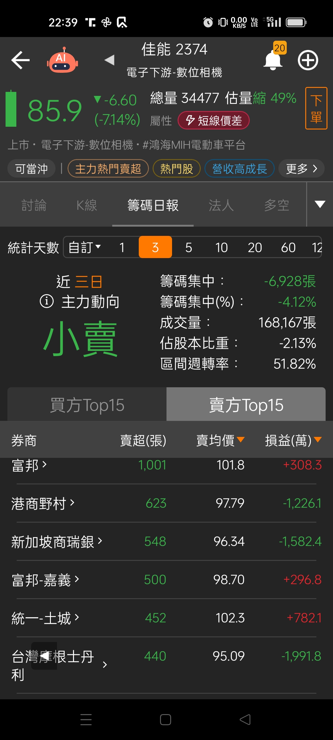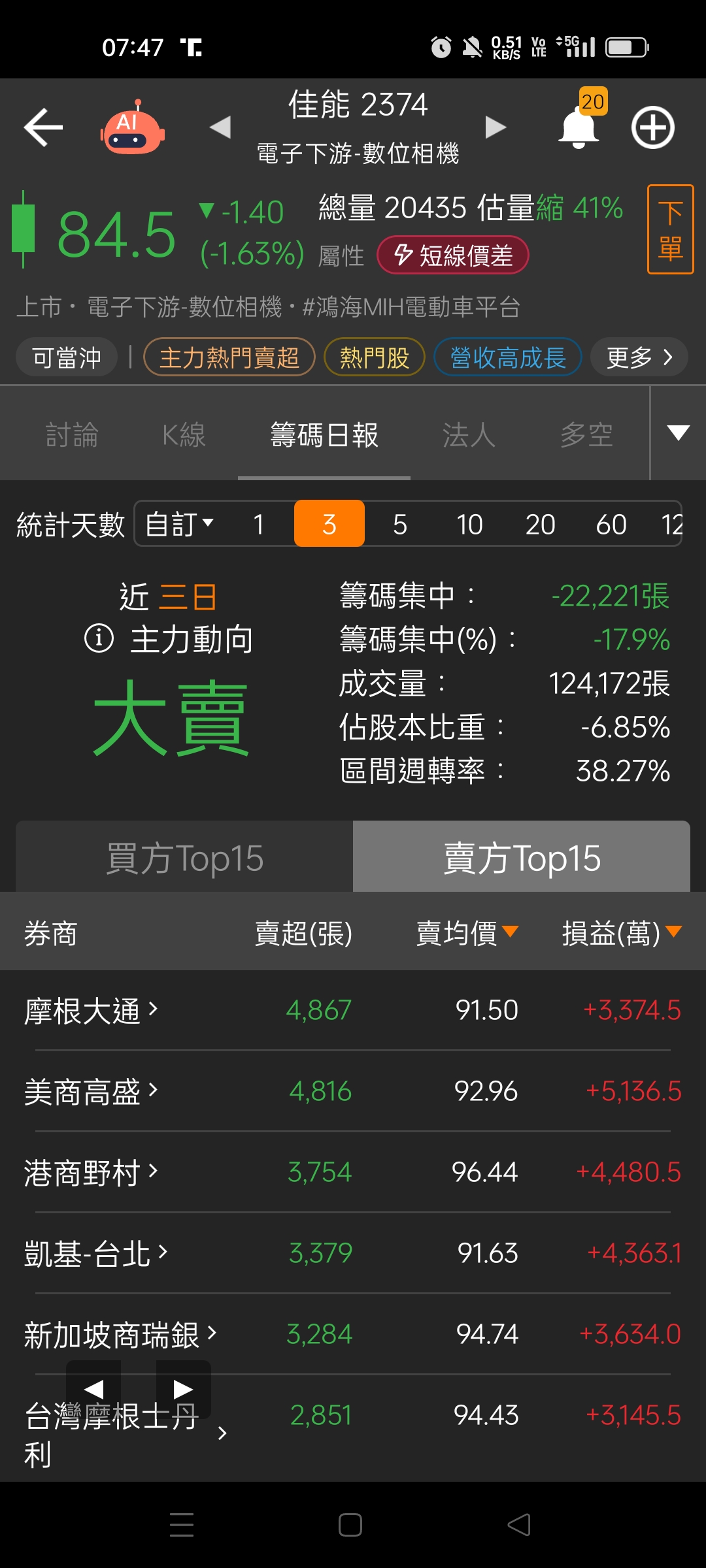 (請教各位先進)近1日VS近3日佳能賣超及利潤
