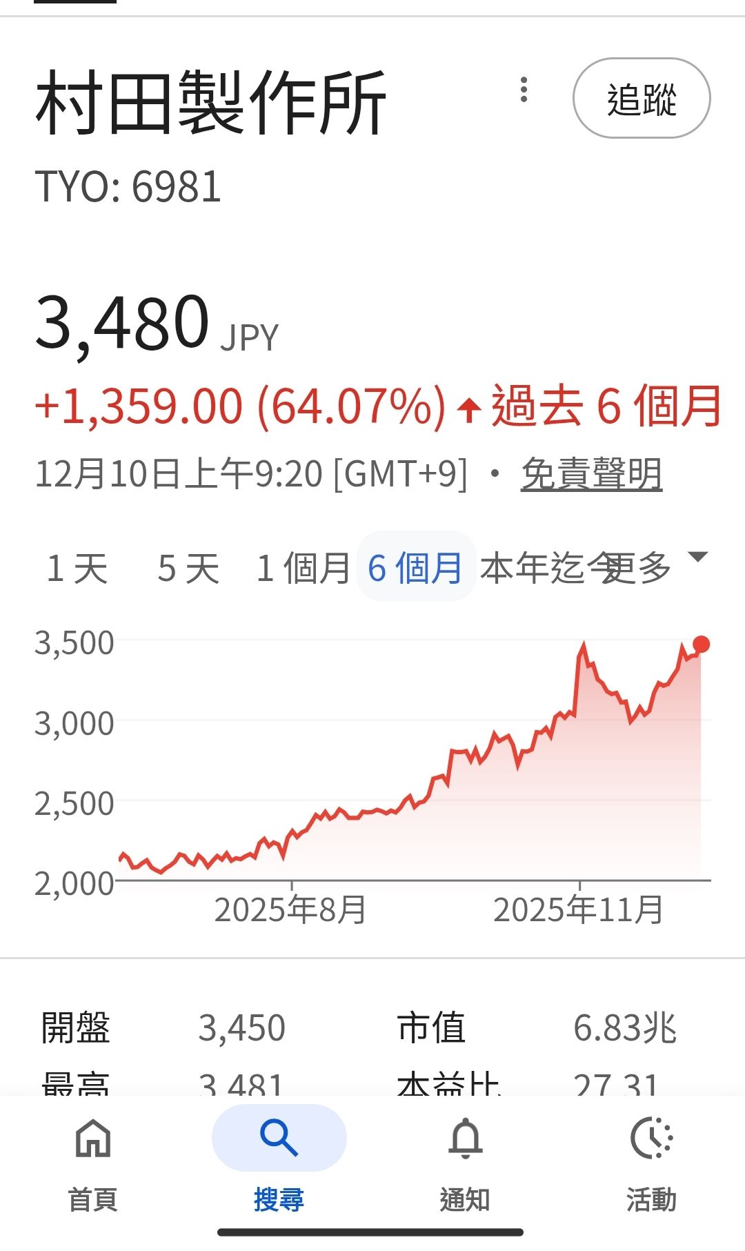 村田目前盤中大漲創高