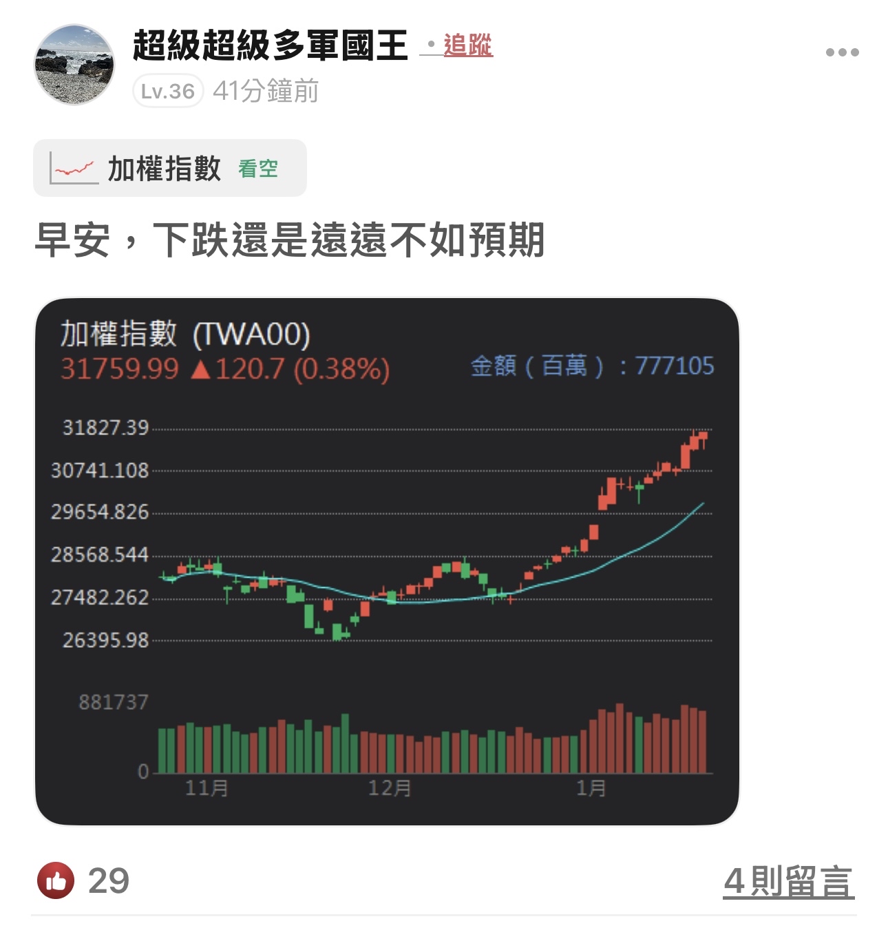 小弟是畢業仔+200%%%空氣單 隨便看看就好 不是職業操盤手也沒在帶進在帶出的 只是喜歡無聊就來亂喊數字而已 剛好有時間才會上線 晚上都在顧小孩原則上沒時間上線搗亂 報告完畢 ...繼續閱讀