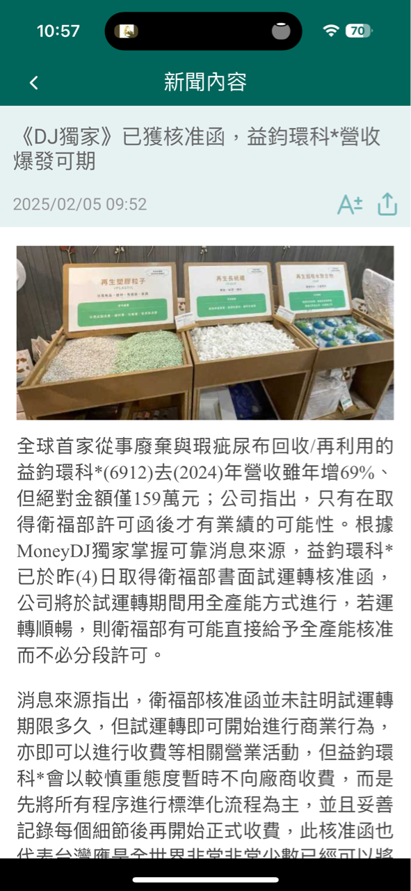 菜雞入股海 追蹤 求知若渴 Lv.14 2025年02月05日 11:27 益鈞環科* 加權指數 展開 +2 益鈞環科正式取得衛福部試運轉核准函,廢棄尿布新里程碑 繼續閱讀 17 56P 4則留言 打賞 分享 留言 讚