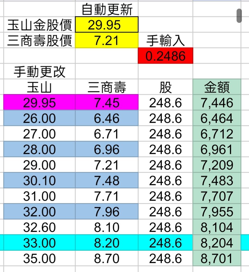 玉山發放現金股利後, 換股公式如圖所示
