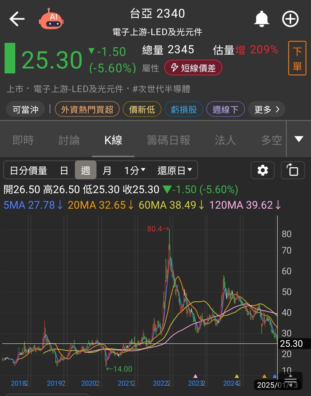 我同事他買18塊,然後我今天買24塊,他說我買在很高點,叫我趕快賣,要不然會跌很慘,真的嗎?怕😰