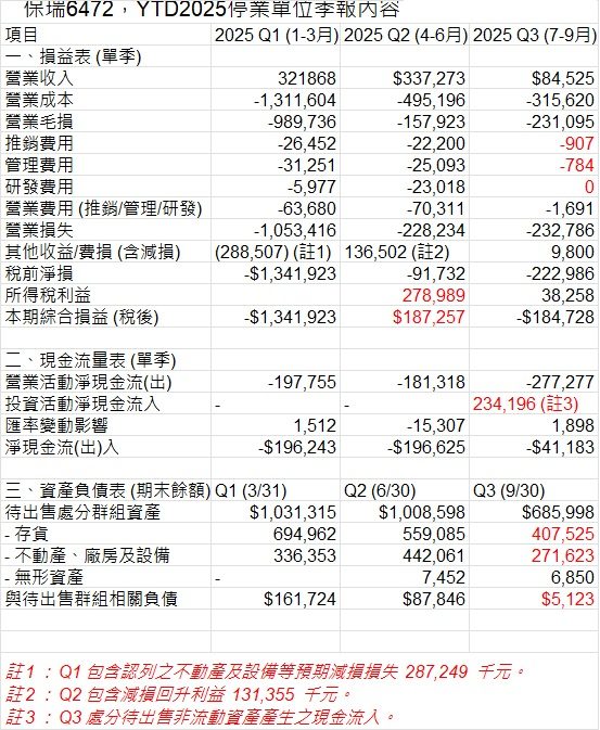 停業單位季報內容