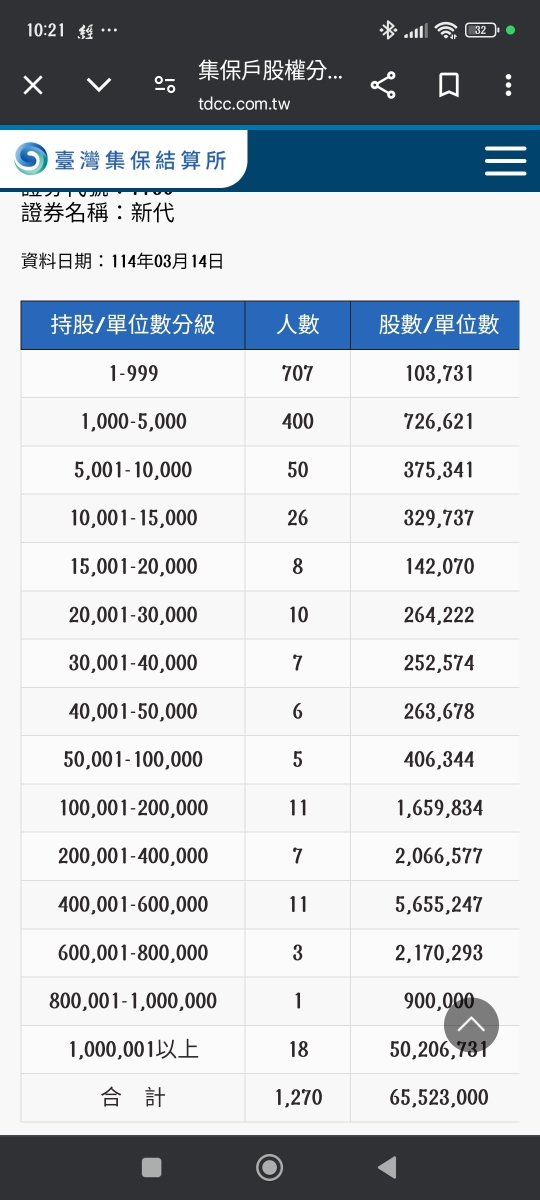 新代近一週籌碼變化