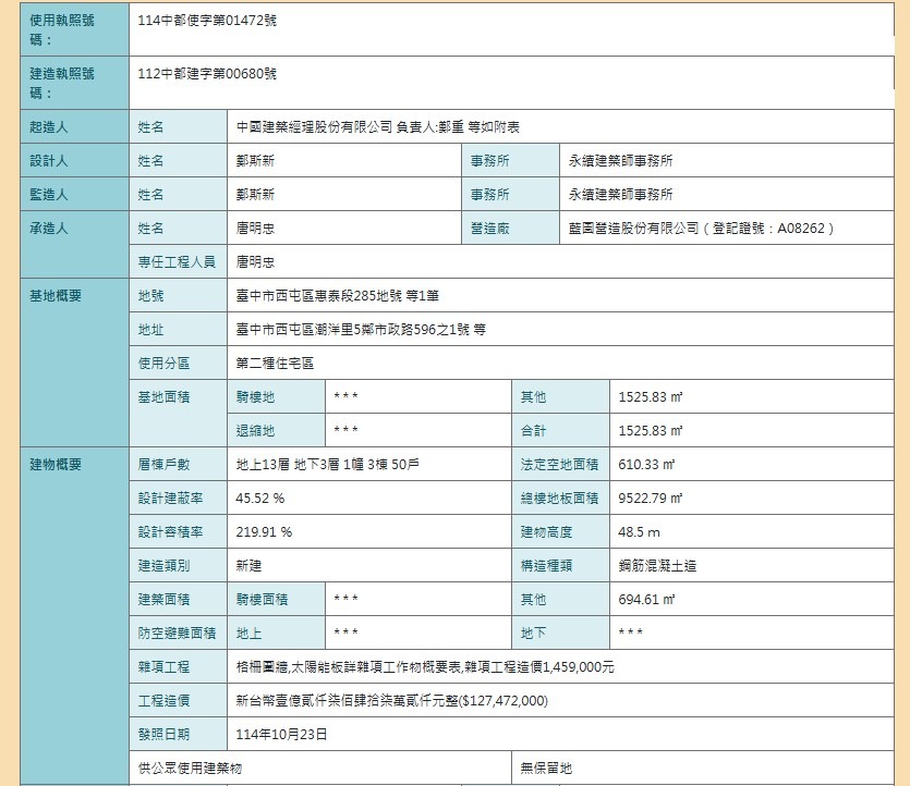 V巿政10/23使用執照己領114中都使字第01472號