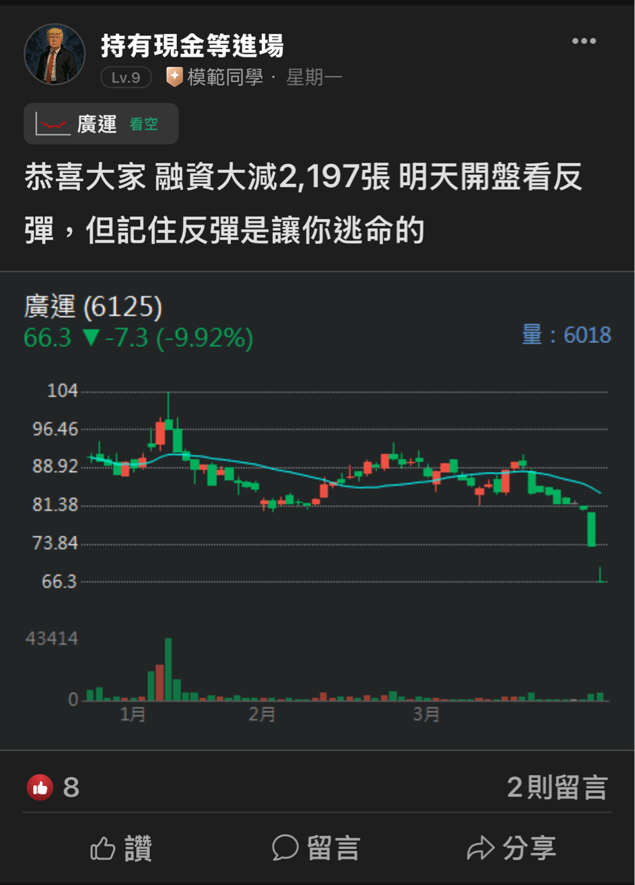 今天收盤後,我逛了一圈討論區,發現罵聲一片。 大家最不爽的點只有一個:「為什麼全世界都在漲,只有長榮跌最多?」 隔壁的 AI 股都在開香檳慶祝,結果我們的船非但不動,還跌了 1 元收在 194。這種「眾人皆醉我獨醒,眾人皆漲我獨跌」的感覺,真的會讓人氣到想摔手機! 今晚我要請大家先撿起手機,冷靜聽我說。 今天的這個「跌」,其實是主力精心設計的「滿分劇本」。 如果你因為今天生氣而賣股票,那你可能剛好中了圈套。 為什麼?我用四個重點,幫大家破解這個「測試」。 1️⃣ 重點一:這是精準的「地板壓力測試」 別只看「跌 1 元」,要看「跌在哪裡」。 技術面告訴我們,長榮目前的整理箱子就在 194元 ~ 203元 之間。 今天的收盤價是多少?剛好就是 194 元! 這絕對不是巧合,也不是主力失控。這是控盤者故意把股價壓到地板邊緣,做一次**「壓力測試」**。 * 他們想看:在全市場都大漲的時候,故意讓長榮跌,看你們會不會心理不平衡而恐慌殺出? * 結果是:量縮了,沒什麼人想賣。 這代表 194 元這個地板是用鋼筋水泥打的。要跳得高之前,必須先深蹲,今天就是在做「深蹲」的動作。 2️⃣ 重點二:別忘了「那個男人」還在場內 大家不要忘記我們看過的籌碼底牌。 在過去這段時間,有一位超級大咖——「合庫(國家隊)」,他在這個價位附近接走了快 1 萬張 股票。 國家隊花了幾十億買在這邊,你覺得他們會讓股價隨便崩下去嗎? 今天這 1 元的跌幅,對我們來說是心痛,對他們來說叫做「進貨成本」。有這種等級的富爸爸跟我們坐在同一條船上,真的不用怕。 3️⃣ 重點三:想等「最後 2 週」再回來?那是自殺行為! 我看有人在討論:「既然高手分析還要整理 6 週,那我能不能先賣掉去追 AI,等最後 2 週再回來買長榮?」 這是一個超級巨大的誤區!這叫「聰明反被聰明誤」! * 主力不會給你「表定時間」: 如果大家都知道要等 6 週,主力通常會在 第 3 週或第 4 週 就突然偷跑! * 只要一根長紅你就輸了: 假設你在 194 賣掉,結果下禮拜突然一個利多拉到 200 元。你會想:「變貴了,等回檔再買。」 結果往往是再也不回頭,一路噴到 220。你為了省這幾週的時間,結果把便宜的船票弄丟了,最後只能去追高。火車要開之前,是不會廣播通知你的。 4️⃣ 重點四:我們團結死抱,會不會害主力「不爽拉抬」? 很多人擔心:「如果大家都聽你的話死抱不賣,車子變重了,主力會不會故意延後發車?」 答案是:絕對不會!反而會提早! * 主力現在怕的是「亂賣」: 他們邊買,散戶邊亂丟,籌碼會很亂。 * 主力喜歡的是「鎖碼」: 當大家都抱緊緊(鎖進保險箱),市面上流通的籌碼變少,主力只需要花一點點錢就能把股價拉上去。 * 時間是主力的敵人: 3 月中 就要公布股息了,這是死線。主力必須在利多公布前趕快買滿。他們沒有本錢跟我們耗,時間站在我們這邊。 🌙 結語:在最熱鬧的時候忍受孤獨 投資最難的,不是選股,而是**「耐心」**。 今天看著別人賺錢,我們確實很難受。但請記得,股市是輪動的。 現在的長榮,就像是一壺快燒開的水。表面上看起來平靜無波,但底下的火(運價、股息)已經燒得很旺了。 不要因為一時的氣憤,交出你守護了這麼久的船票。 我們不需要羨慕別人,我們只需要守好自己的財富。 大家晚安,明天我們繼續挺住,等 3 月讓別人來羨慕我們!💪 (以上心態與籌碼分享,幫我按讚、打賞+追蹤,投資路上我們一起加油)