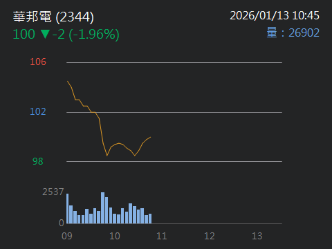 焦點股》華邦電遭列處置股 盤中一度跌停→