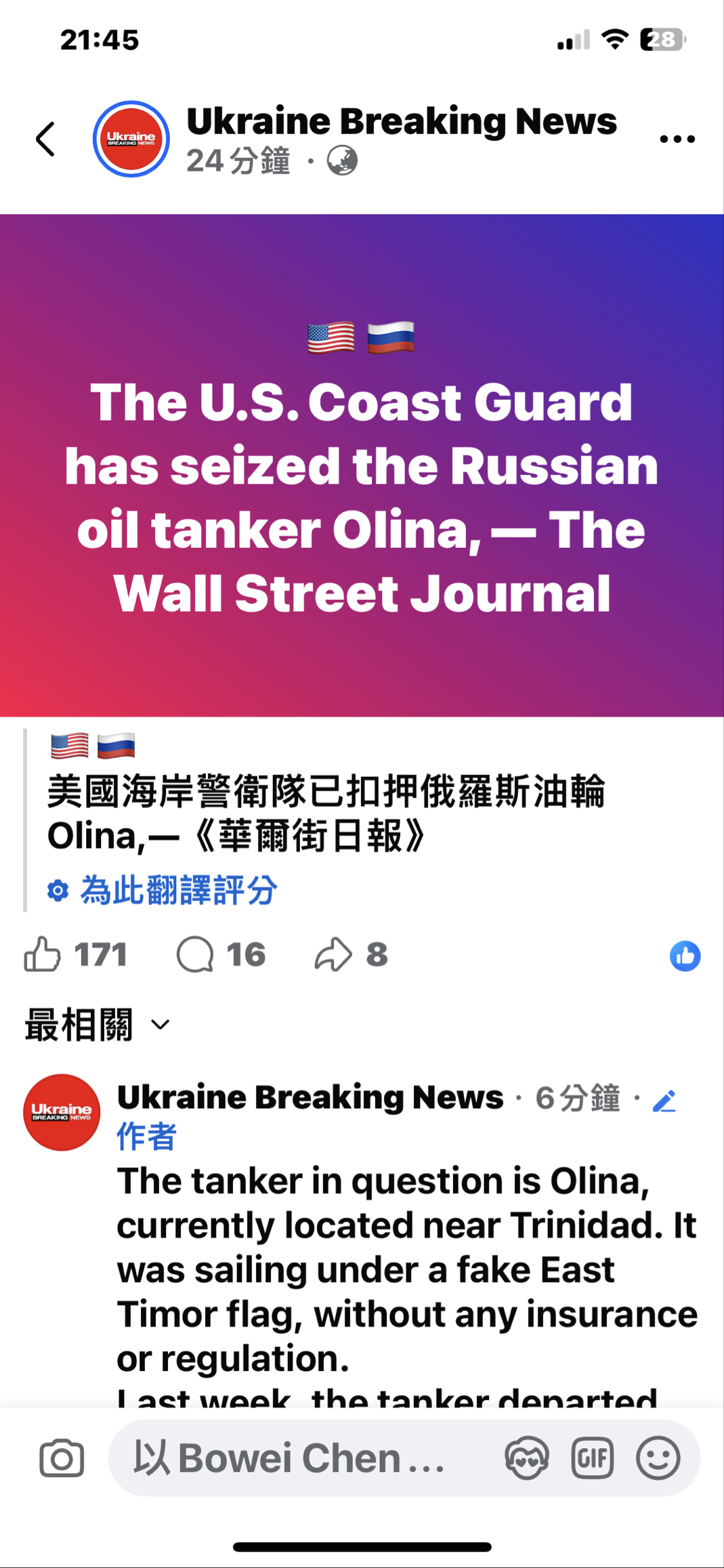 滷蛋配韭菜 追蹤 超級幫手 Lv.21 星期四 12:42 長榮 展開 +1 若開戰伊仿照胡賽封鎖海峽 專家:若美軍事干預伊朗 荷莫茲海峽面臨封鎖風險 荷莫茲海峽(Strait of Hormuz)再度成為關注焦點,因為美國可能對伊朗進行軍事干預,增加德黑蘭當局封鎖這一全... 經濟日報 21 0P 0則留言 分享 留言 讚