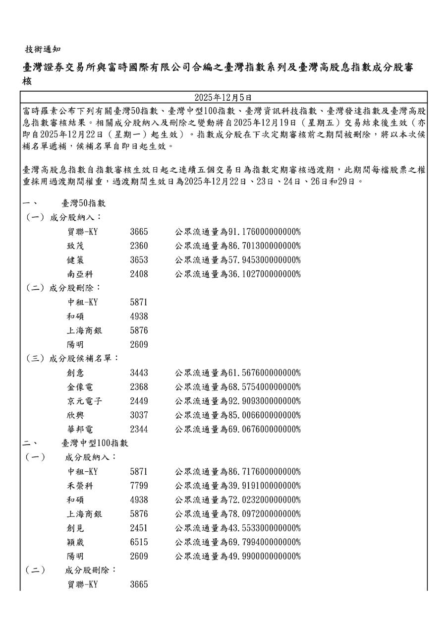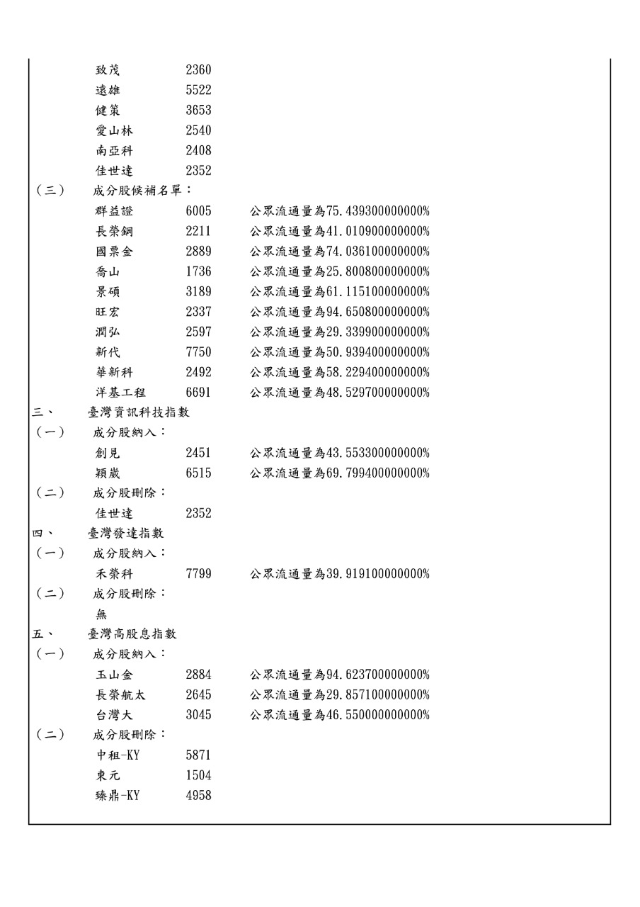 台灣高股息指數成分股調整