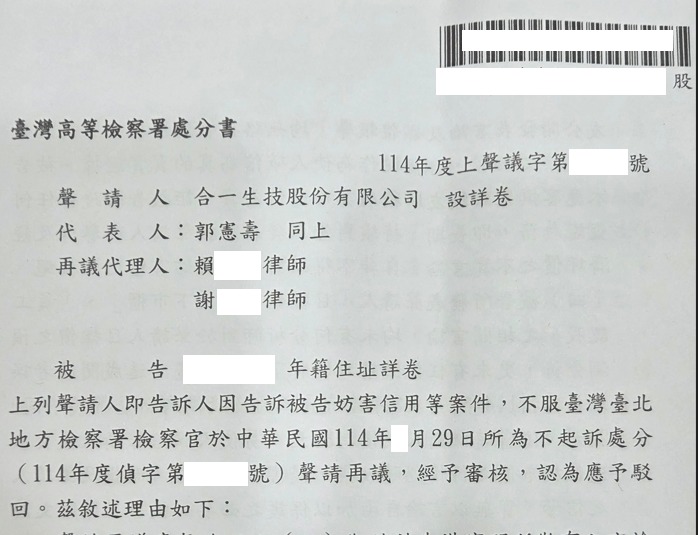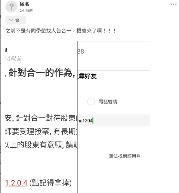 各位網友, 針對合一的作為, 已有律師要受理