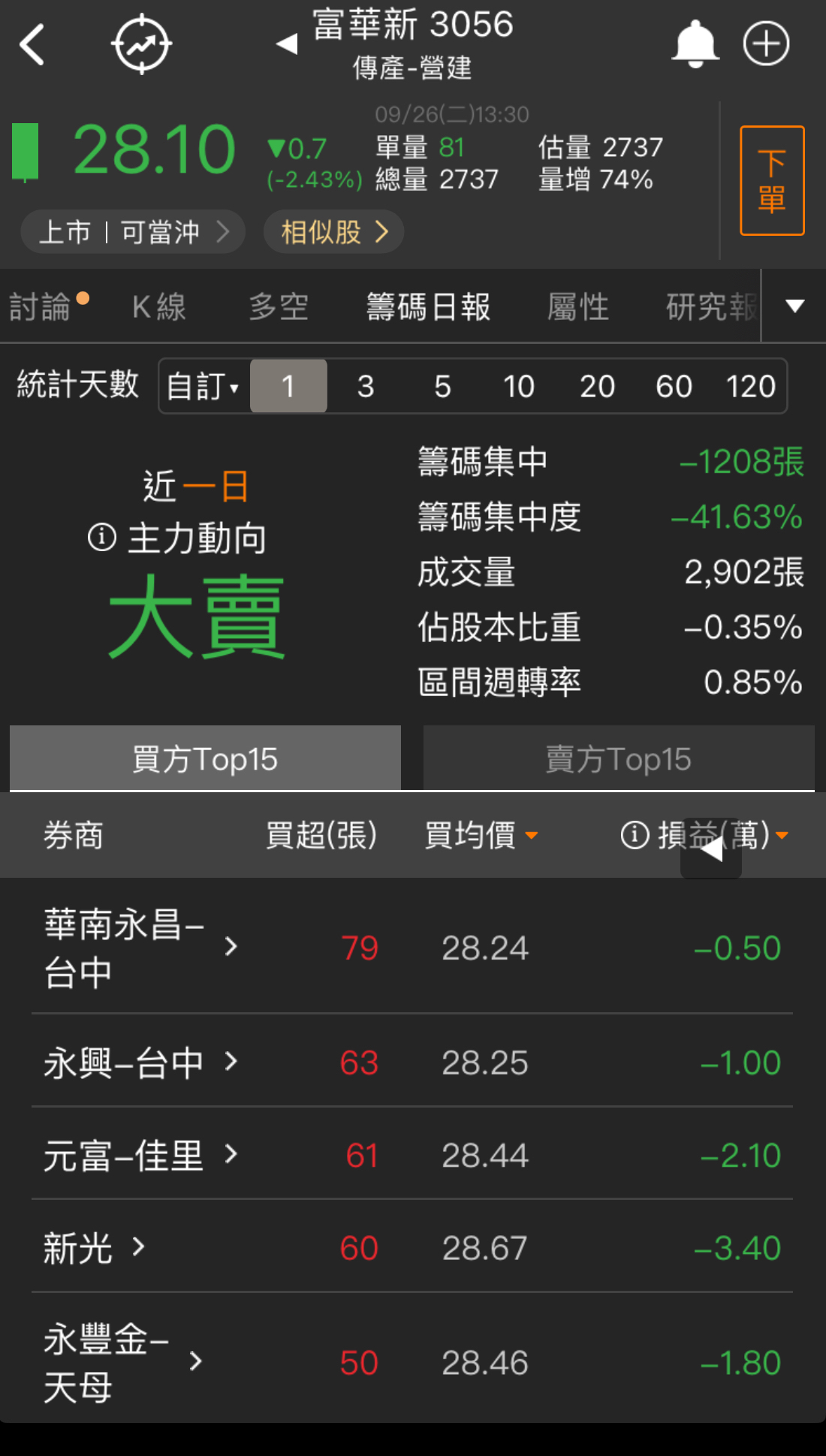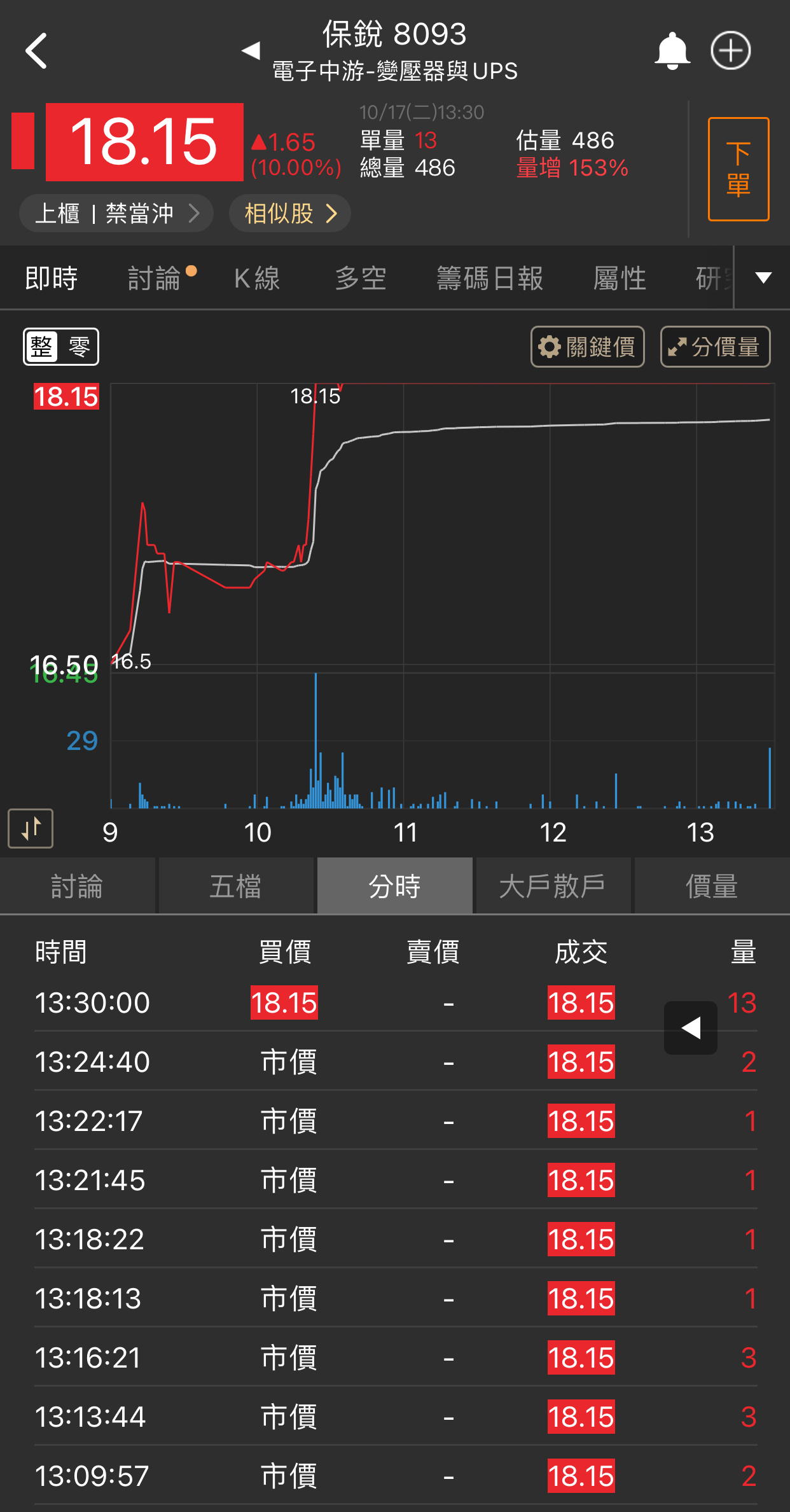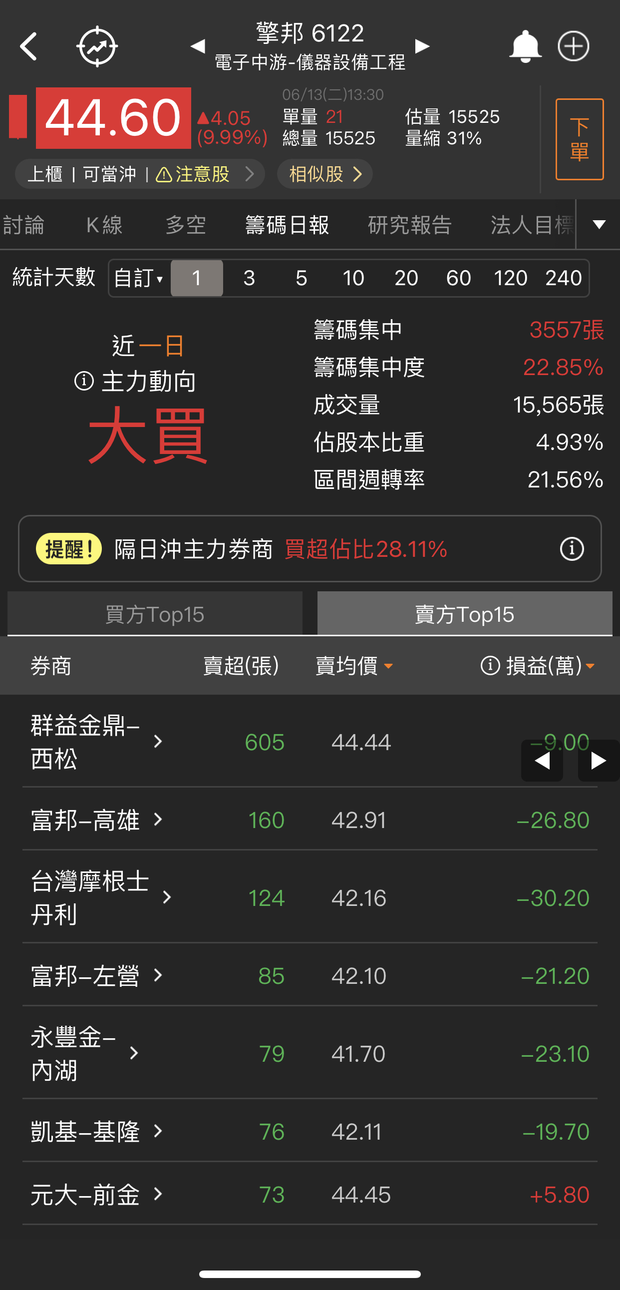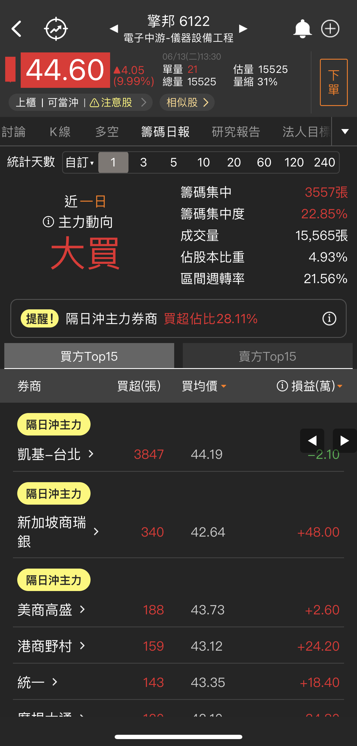 目前從開盤到現在的狀況,台積電開高之後目前是開高走低且目前預估量約58000張,因此可初步判定台積電雖然有展開日線第5波的攻勢,但不是很乾脆,是有可能創高一小段就拉回的走勢,如果是這樣台積電第5波不會很長,而且不能排除這真的非常有可能就已經是確認目前台積電(加權指數)就是漲5-5末升段了,當然由於目前最大可能是不斷創一小段新高就拉回的走勢,因此時間會拖的很久,目前先不考慮走空就是個股表現。 至於個股表現今天還是記憶體族群表現最好,而且不論記憶體次族群製造、模組、IC封測、IC設計都有好幾檔股票大漲,再度驗證記憶體就是市場續航力最強主流。