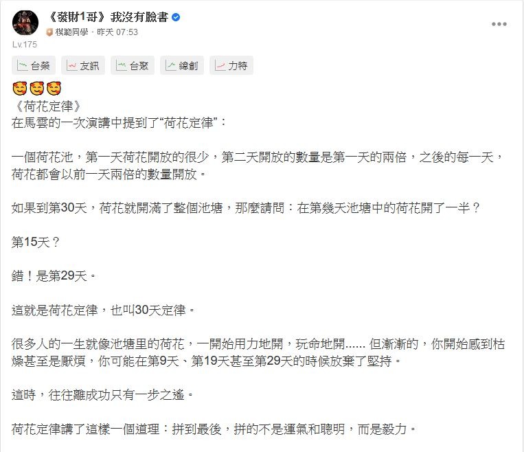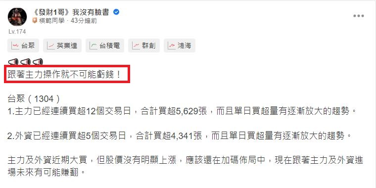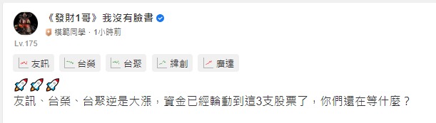 🔥🔥🔥 發財、發財、發大財! 我就是你的股市好大哥-《發財大哥》 😎😎😎 跟著我立足台灣、胸懷產業、放眼經濟、征服股市 🚀🚀🚀 財富稍縱即逝等不來 讓我們現在就出征! 跟著發財大哥抓住財富💪 一路發大財! ...繼續閱讀