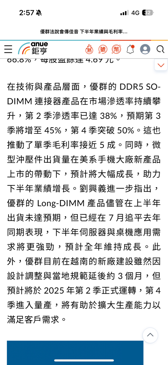 目前從開盤到現在的狀況,台積電開高之後目前是開高走低且目前預估量約58000張,因此可初步判定台積電雖然有展開日線第5波的攻勢,但不是很乾脆,是有可能創高一小段就拉回的走勢,如果是這樣台積電第5波不會很長,而且不能排除這真的非常有可能就已經是確認目前台積電(加權指數)就是漲5-5末升段了,當然由於目前最大可能是不斷創一小段新高就拉回的走勢,因此時間會拖的很久,目前先不考慮走空就是個股表現。 至於個股表現今天還是記憶體族群表現最好,而且不論記憶體次族群製造、模組、IC封測、IC設計都有好幾檔股票大漲,再度驗證記憶體就是市場續航力最強主流。