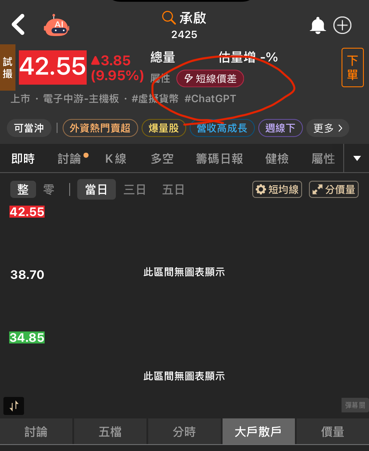 您接下來操作台玻(1802)最重要的**「作戰地圖」**。 電腦系統根據過去交易數據算出的**「關鍵價位」**。簡單來說,接下來這隻股票會在哪裡遇到「敵人(壓力)」以及哪裡有「援軍(支撐)」。 三個非常關鍵的訊號: 1. 終極魔王關卡:41.75 元 您會發現 41.75 這個數字連續出現了三次(60日、120日、240日最高價)。 意義: 這代表 41.75 元 是台玻過去 整整一年(240天) 以來的天花板。 戰略: 這是本波段多頭攻勢的**「最終目標」**。主力花了這麼大力氣突破 38 元,目標絕對不僅僅是這裡,而是要挑戰這個去年的最高點。只要股價逼近 41.75,都要留意可能會遇到解套賣壓,屆時需觀察量能是否足夠衝過去。 2. 超速訊號:布林通道上緣 (36.97 元) 請注意看表中的 「B.Band-(20MA+2σ)」 數值是 36.97,而現在股價是 38.00。 意義: 股價已經衝破了布林通道的天花板(上緣)。在統計學上,股價有 95% 的時間會跑在通道內,衝出通道代表現在是**「極度強勢」**的狀態,俗稱「沿著布林通道飛行」。 戰略: 這是飆股的特徵。只要股價能維持在 37 元(通道上緣附近)之上,就代表動力十足,千萬不要輕易下車。 3. 明天的短線目標:39.22 元 表中有一個 「三關價-上關」 數值是 39.22。 意義: 這是根據今天的波動算出來的**「明天短線壓力位」**。 戰略: 如果明天(週五)開盤氣勢夠強,股價很可能會去觸碰 39.2 元 附近。如果您是做當沖或極短線的,可以在這裡先調節;如果是做波段的,這只是中途站,不用太在意。 總結 台玻現在處於**「萬里無雲」**的狀態。 下方支撐(防守點): 原本的壓力變成支撐。現在 36.97 元(布林通道上緣)與 36.40 元(三關價中關)是強力的地板。只要不跌回這些價位之下,多頭格局都非常穩固。 上方目標(進攻點): 第一站看 39.22,終極目標看 41.75。 建議:「車速很快,請繫好安全帶」。目前上方沒有明顯阻礙,直達 41.75 元的機率非常高!