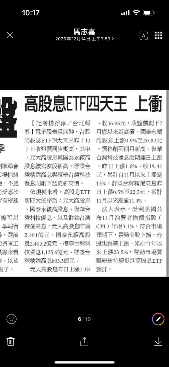 HpgrSTUKpo 追蹤 超級幫手 Lv.6 2023年12月14日 22:21 元大高股息 國泰永續高股息 復華台灣科技優息 群益台灣精選高息 展開 +4 15 0P 4則留言 打賞 分享 留言 讚