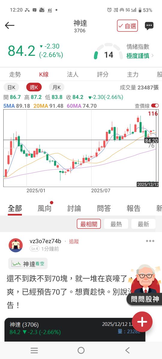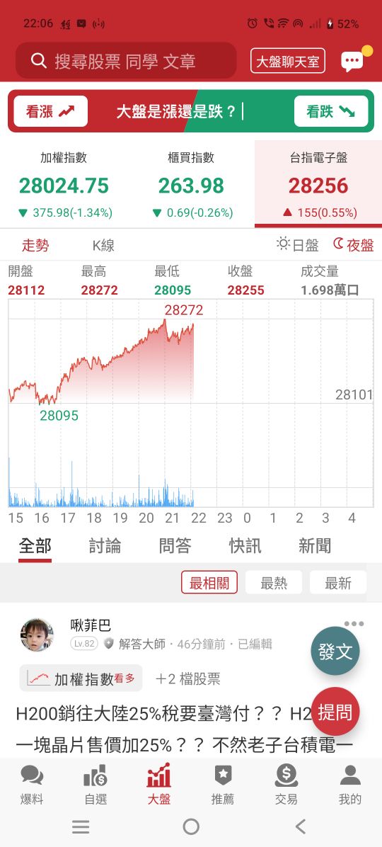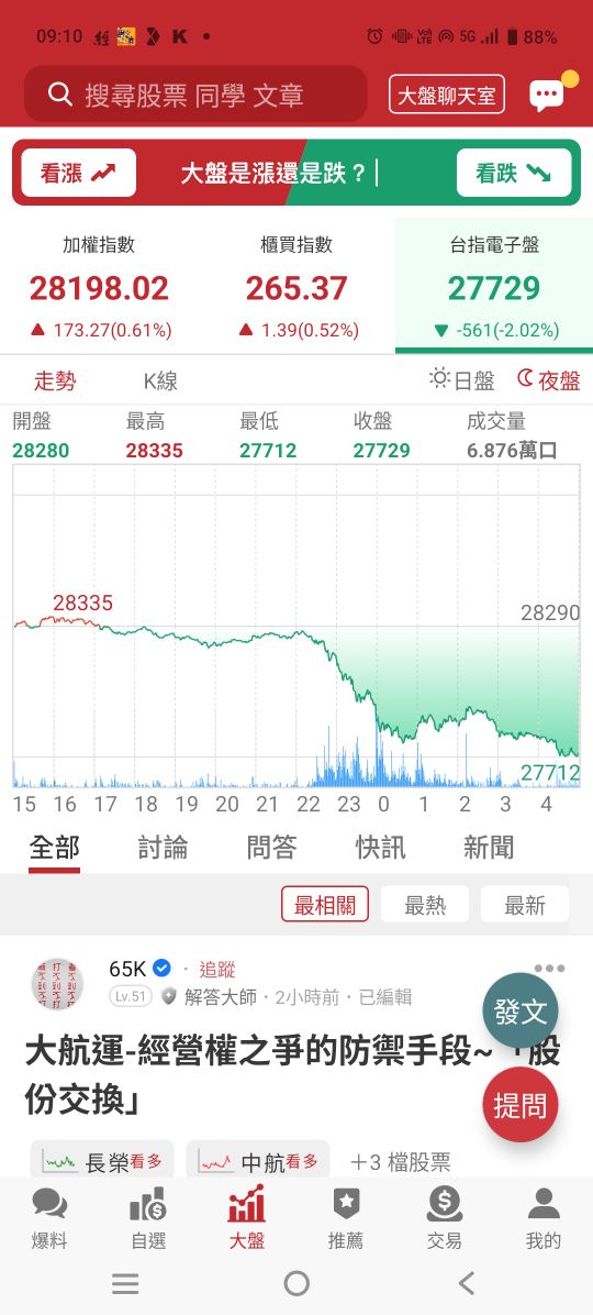 量能集中在有明確新聞催化的權值與題材股,指數在前高區與短期均線間來回整理,投資人多採觀望等待通膨與政策線索。從分時走勢觀察,賣壓主要在漲多族群出現,防禦與高股息標的承接力道相對穩定。