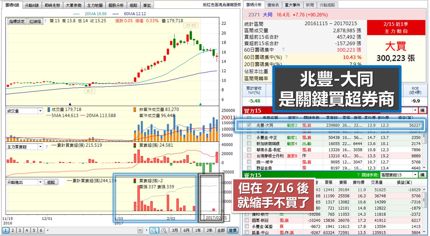 於是我又打開 籌碼K線 檢查一下分點主力進出情形,
