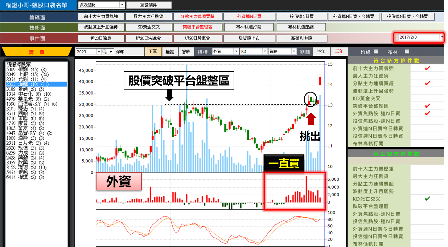 小哥特別將「外資連續買超」標的找出來,