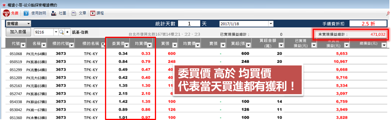 觀察主力買進權證後,是否有賺錢