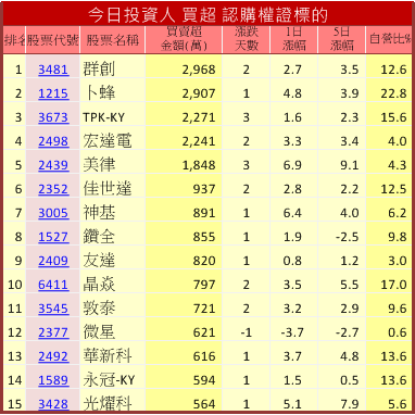 (資料來源:主力收購權證監控表(認購))