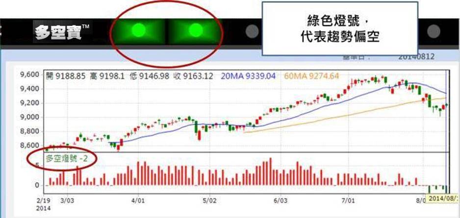 多空寶是根據盤後資料彙整,以紅綠燈號作為盤勢多空判斷的依據