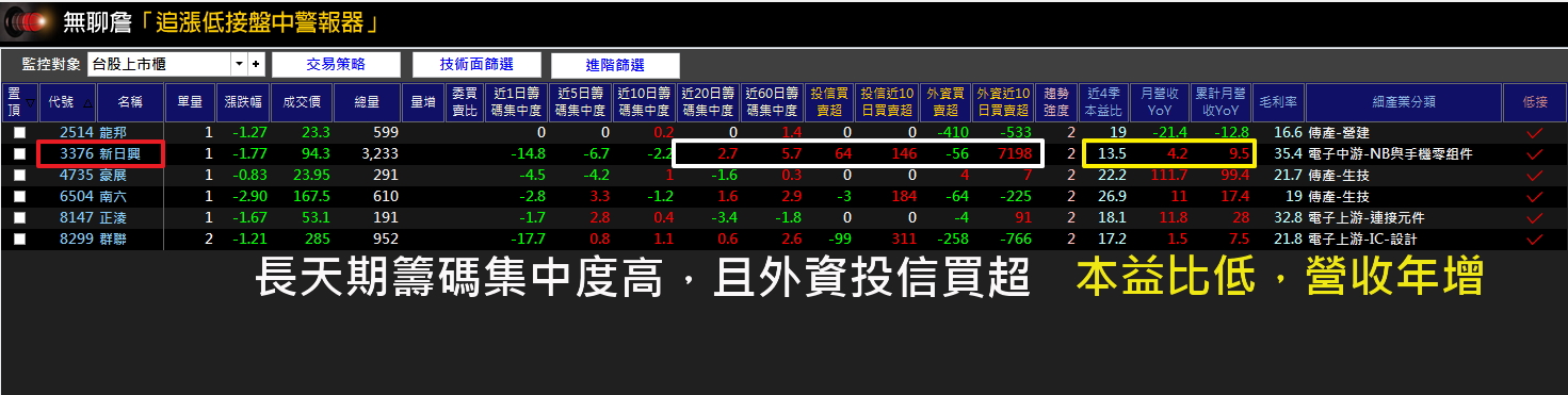 6/18 日盤中,新日興(3376) 它出現在警報器的眾多標的中!