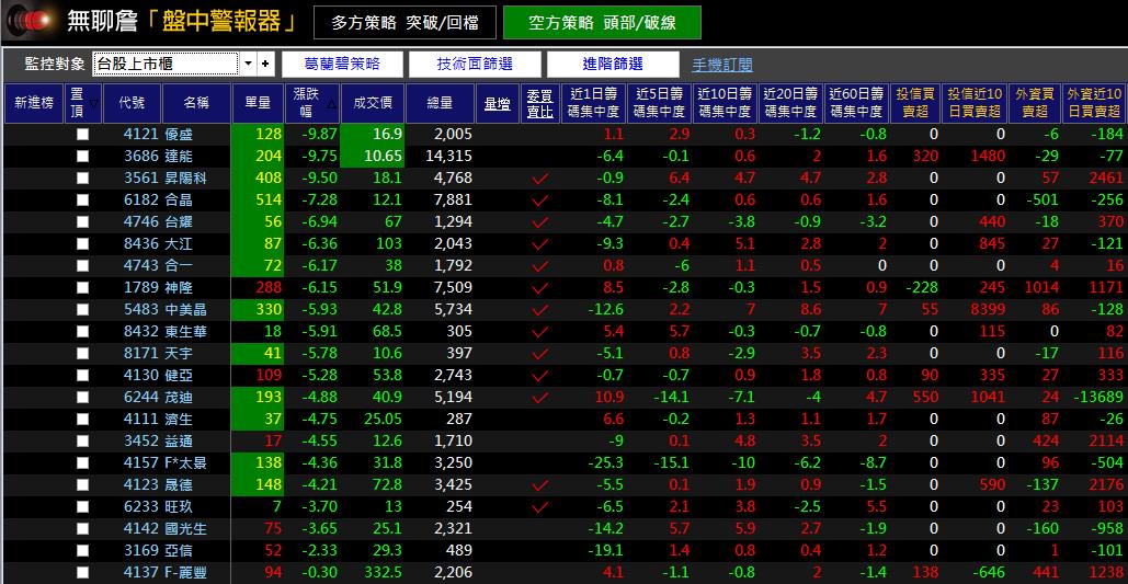 看到當天警報器的個股狀況,方便回測與學習。