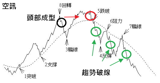如今,無聊詹再次透過葛蘭碧法則,撰寫出空方訊號:頭部成型、趨勢破線