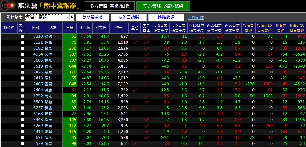 盤中警報器 可以在盤中快速找到疑似頭部的個股