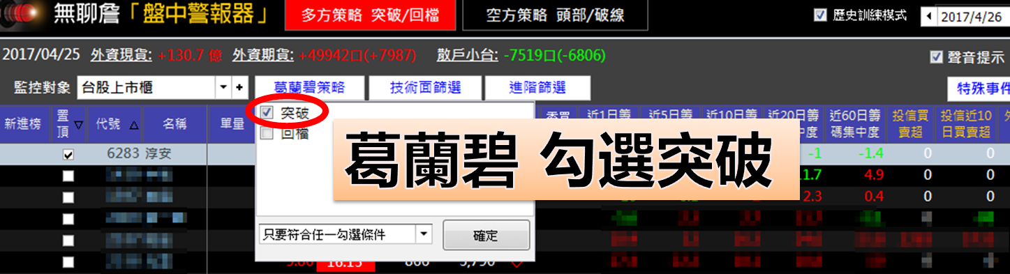 「葛蘭碧法則+主力籌碼過濾系統」來篩選股票