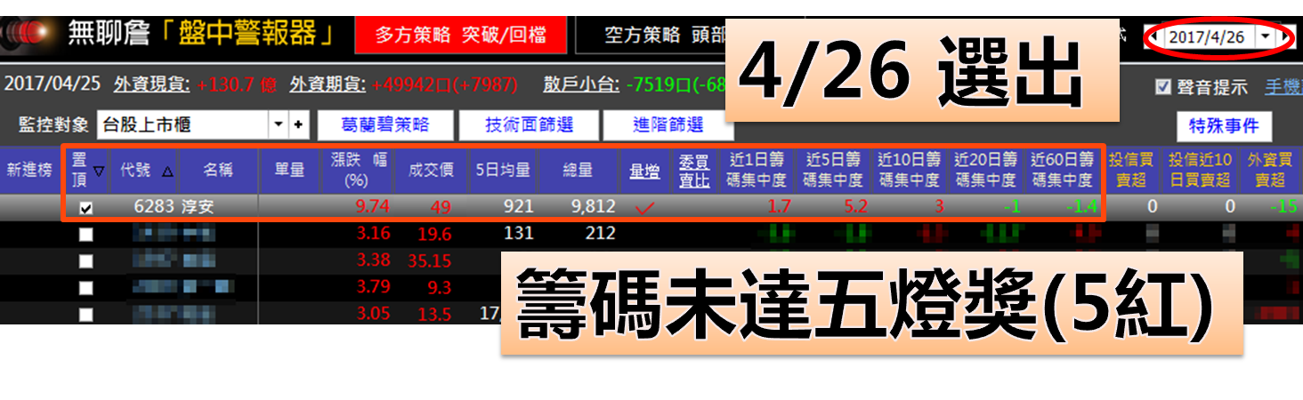 當股票沒符合「籌碼五燈獎」時