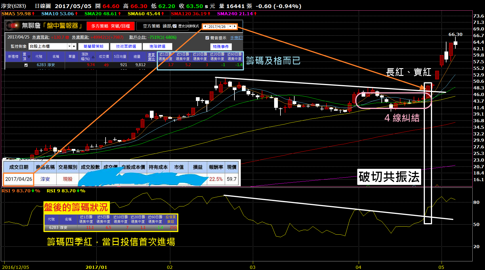 淳安(6283) 在 4/26 日盤中跳出「葛蘭碧突破」訊號,