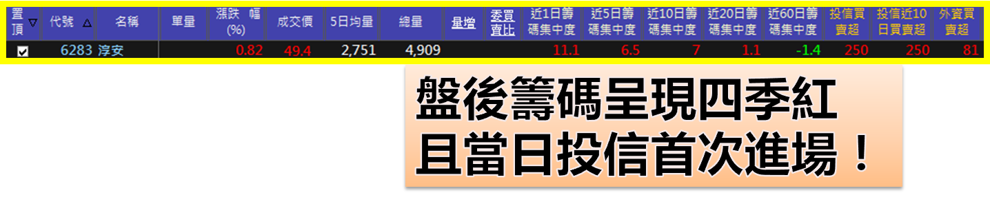 你會發現當天是投信首次進場,且籌碼也轉換為四季紅模式,