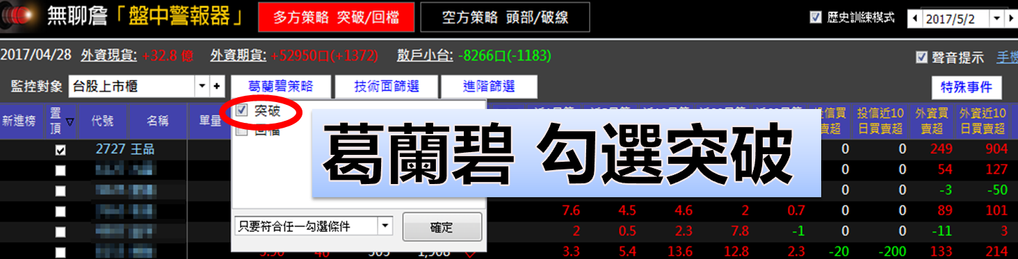 盤中警報器 能用「葛蘭碧策略 + 主力籌碼過濾系統」