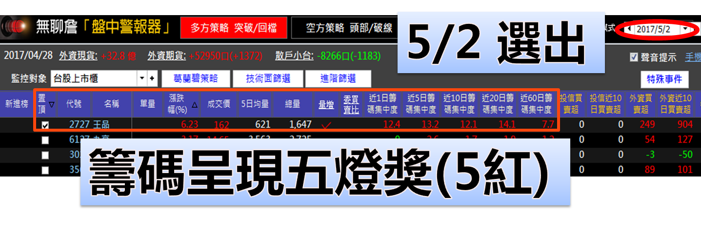 當股票符合籌碼五燈獎