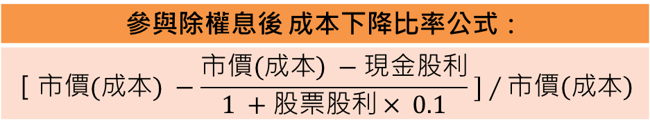 可用團隊 參與除權息後的成本下降比率 計算出貼權息價格。