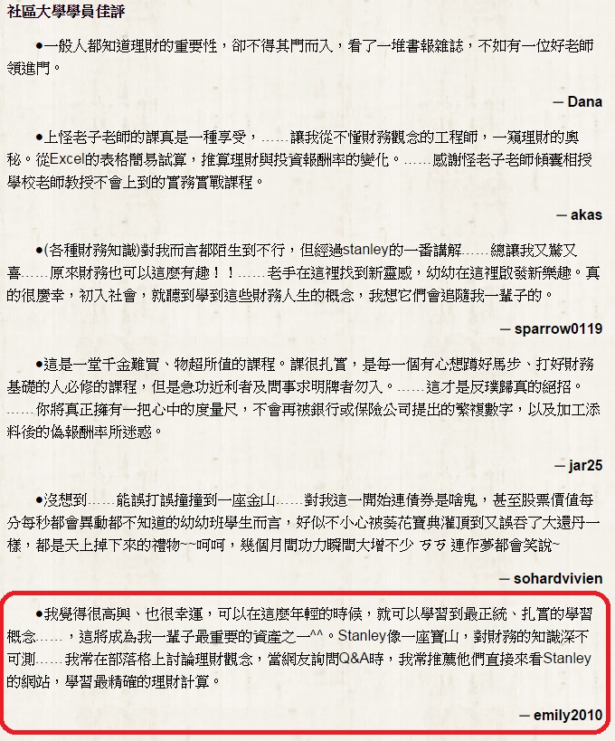 老師一直說多年前上社區大學的理財課時,