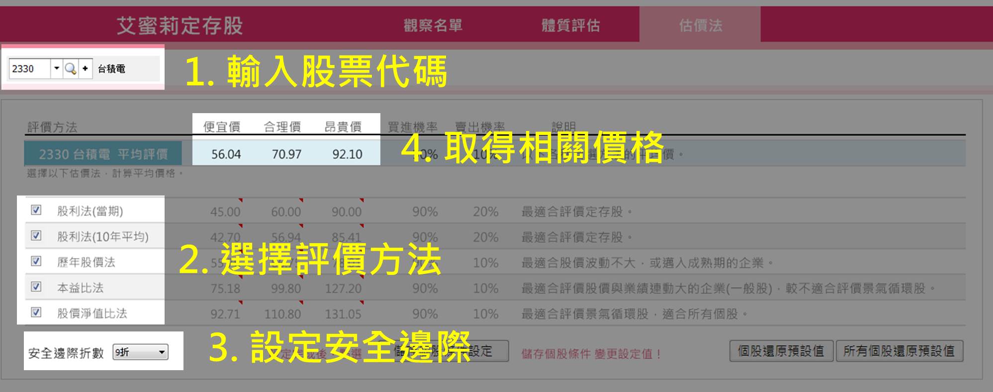 3. 設定安全邊際 (可手動用下拉式選單調整成不打折、85 折...等)