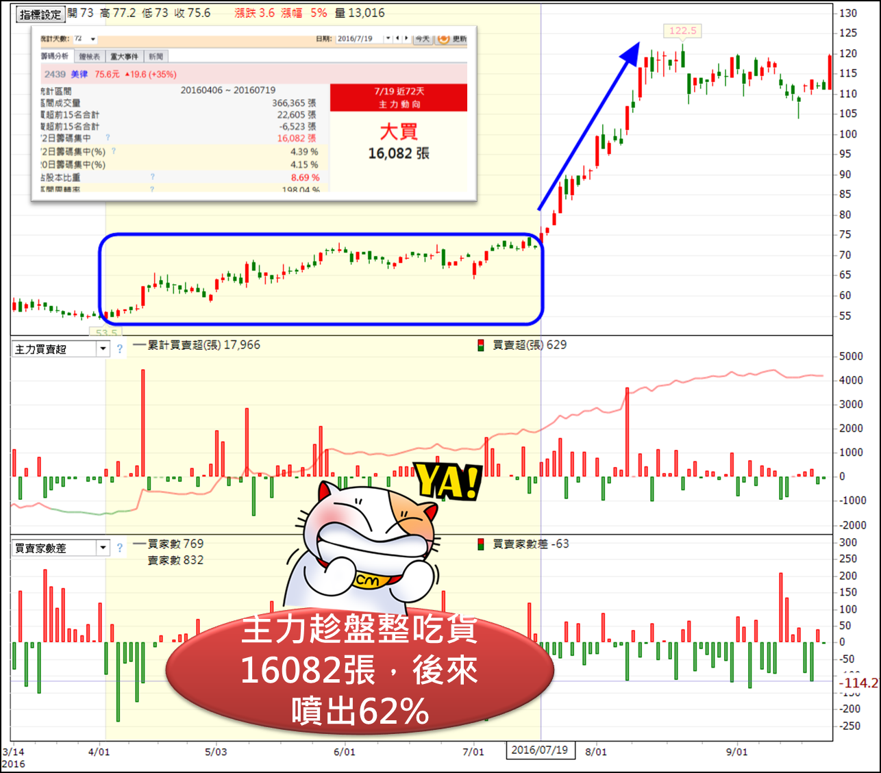赫然發現主力在這 72 天就大買了 16082 張