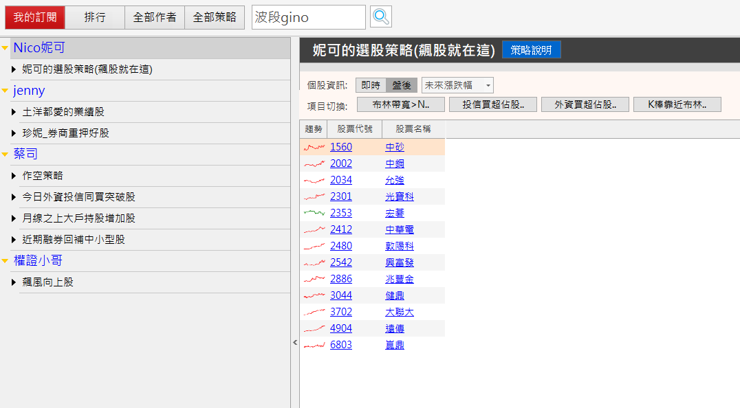 大家可以從中挑選喜歡的策略再點擊「訂閱」,就會看到所訂閱的策略篩選出來的股票囉!