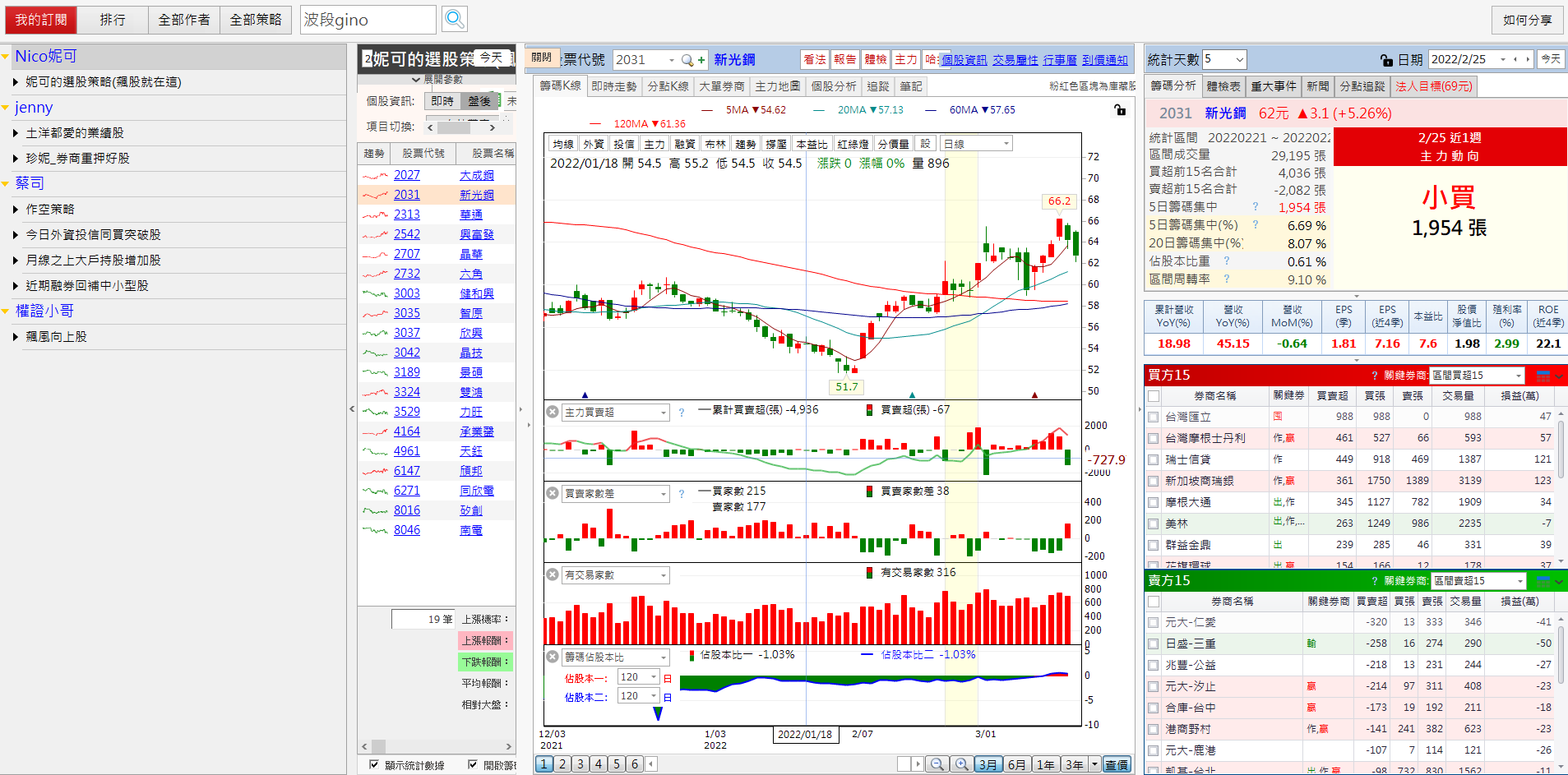 密技交流區裡還有很多選股策略,大家可以打開 籌碼K線 多比較看看,但不管哪一種選股組合,別忘了搭配大盤走勢,看當時屬於多、空或盤整,要是看錯方向,可不是選股組合的問題喔~
