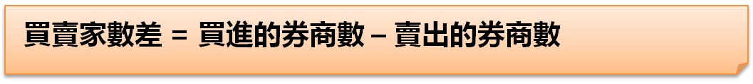 假設券商甲乙丙丁一直賣股票,戊券商一直買進,股票就會集中在少數人手中,買的人只有 1 家、賣的人有 4 家,則買賣家數差 = 買家 - 賣家,1 - 4 = - 4。