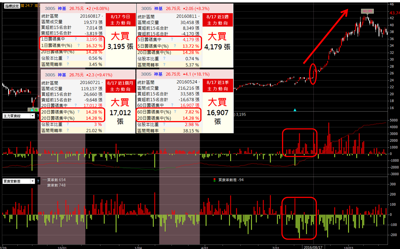 用密技在 2016/ 8/ 17 ,可以挑出這檔股票,過去 1 到 60 日籌碼集中度 在 7~16%,兩個月後股價漲 37%
