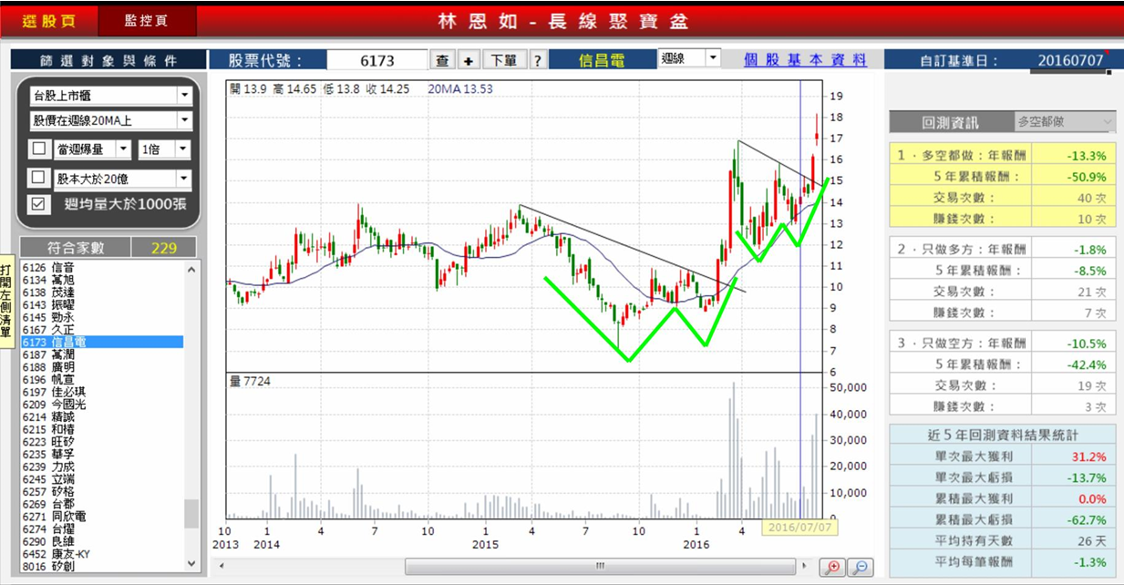 2016/07/07 (四) 用 20 週均線 判斷,