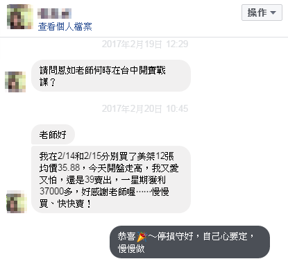隔天 2/15 又在看似低點要反彈時再加碼兩天總共買12張